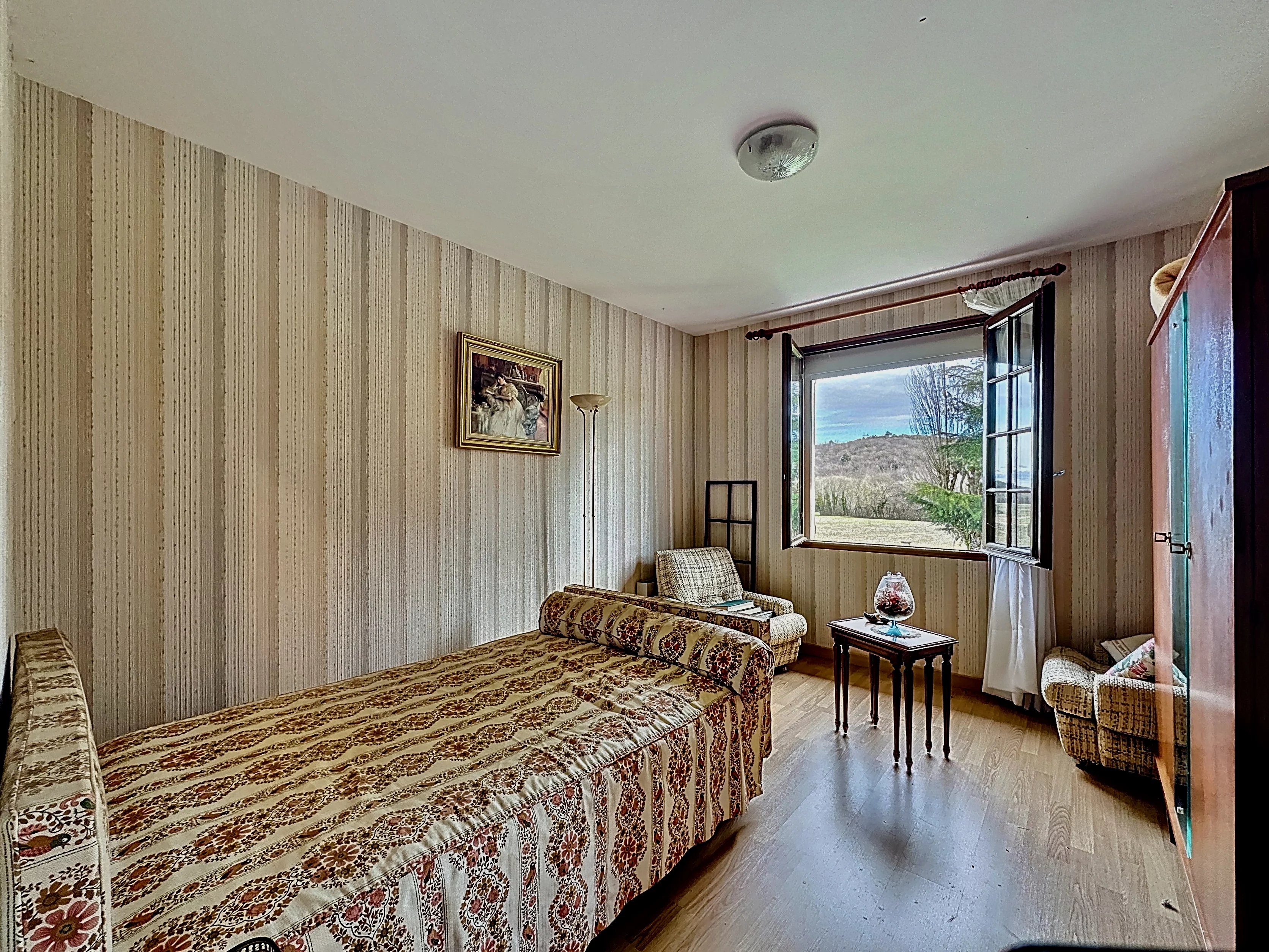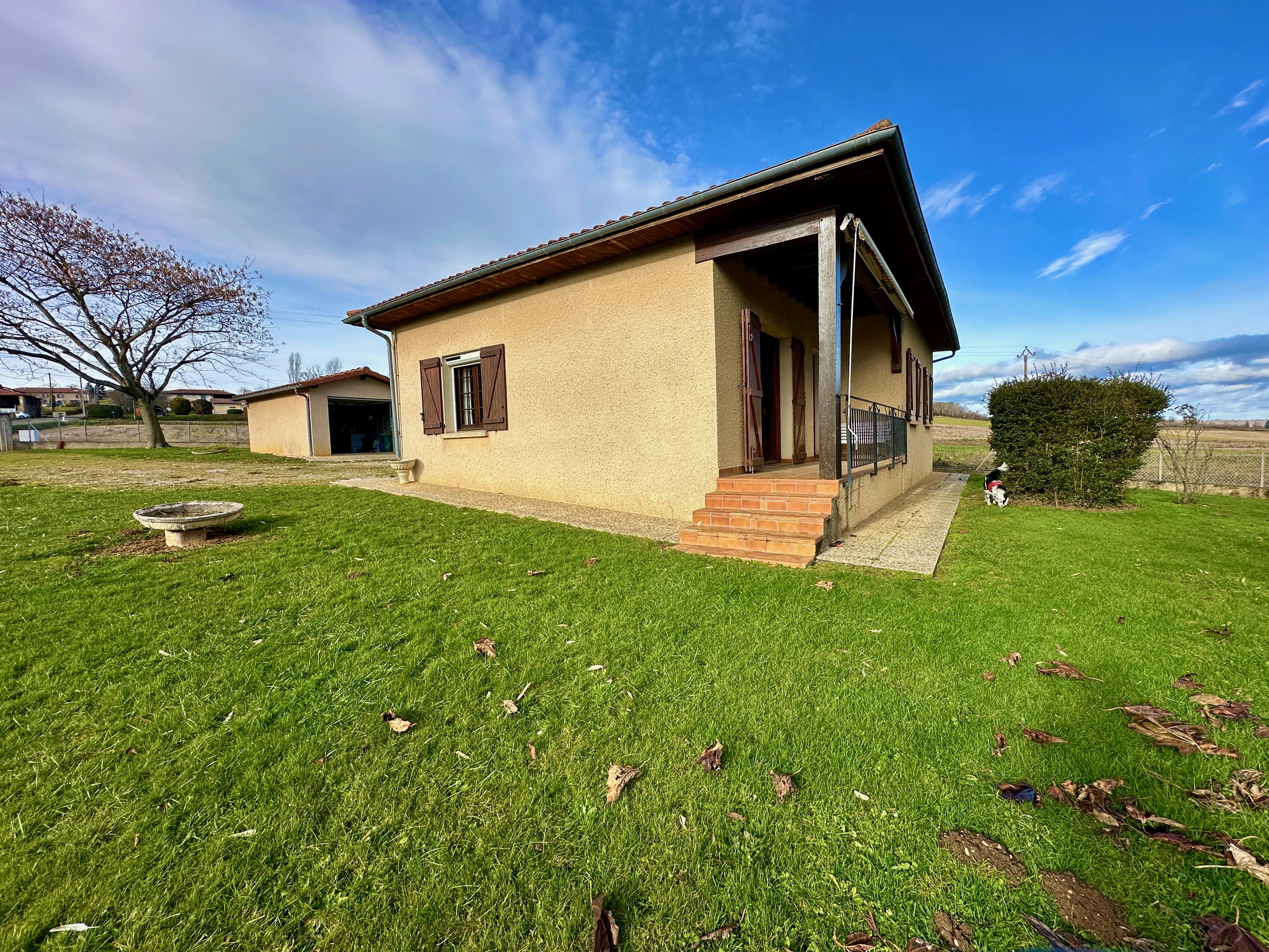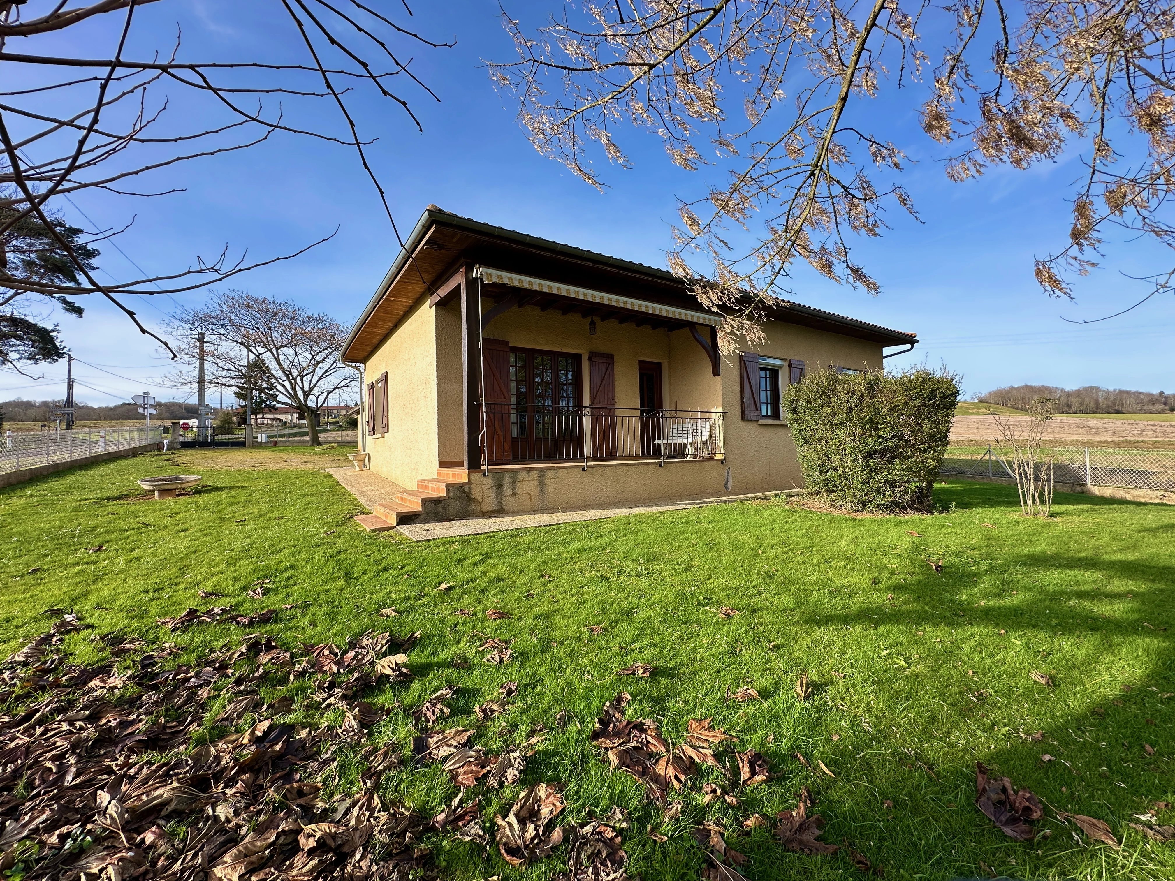 Ce plain-pied construit en 1985, situé entre Lannemezan et Boulogne-sur-Gesse, offre 90 m² habitables sur un terrain de 5000 m² .