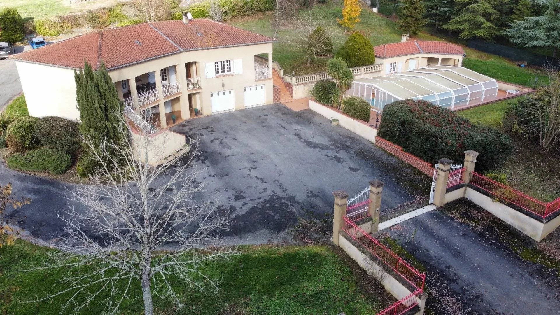 Découvrez cette magnifique construction de 1990 sur un terrain arboré et clôt de 4594m²,avec piscine couverte, spa et cuisine d'été, le tout dans un environnement très calme.