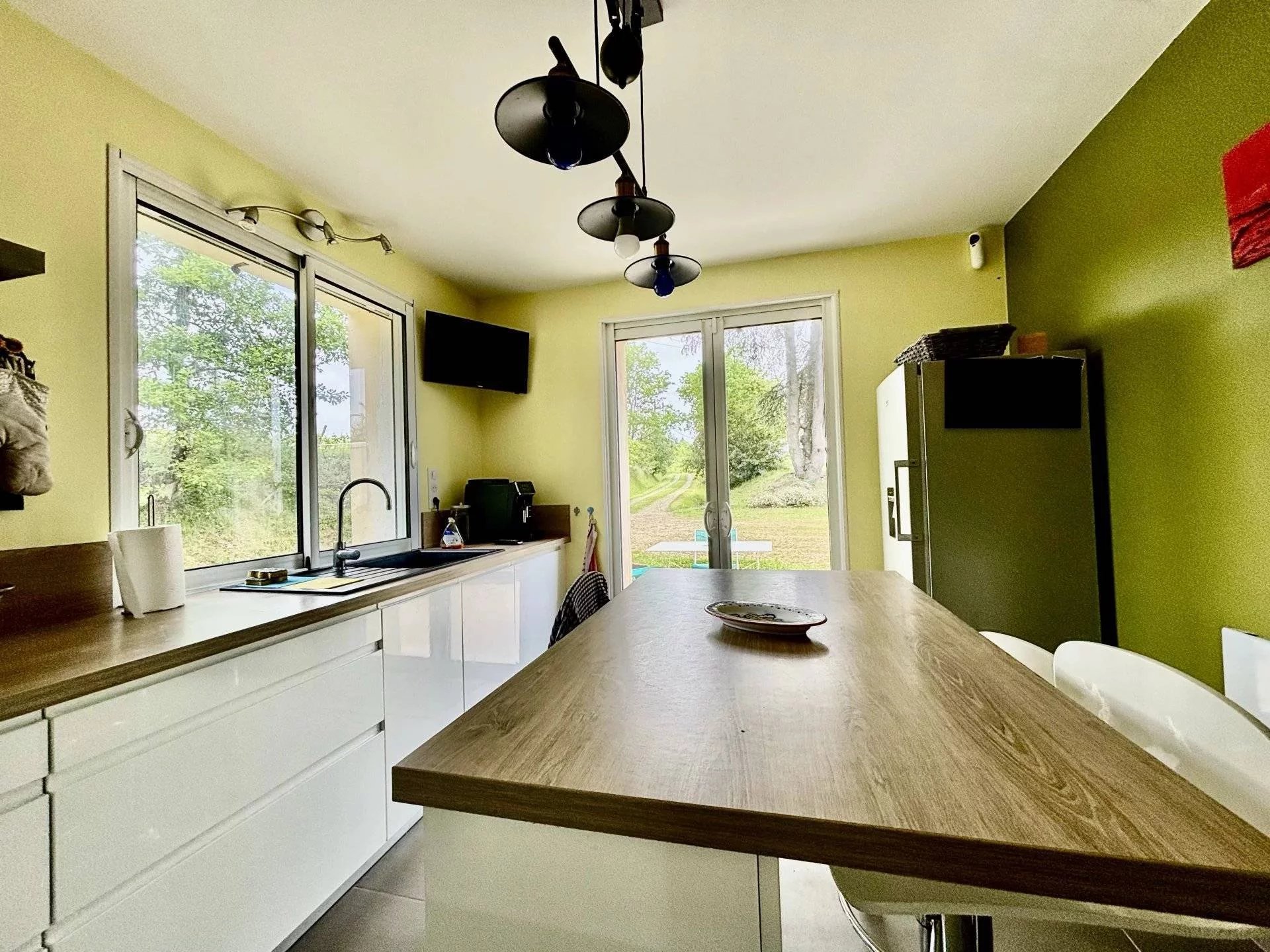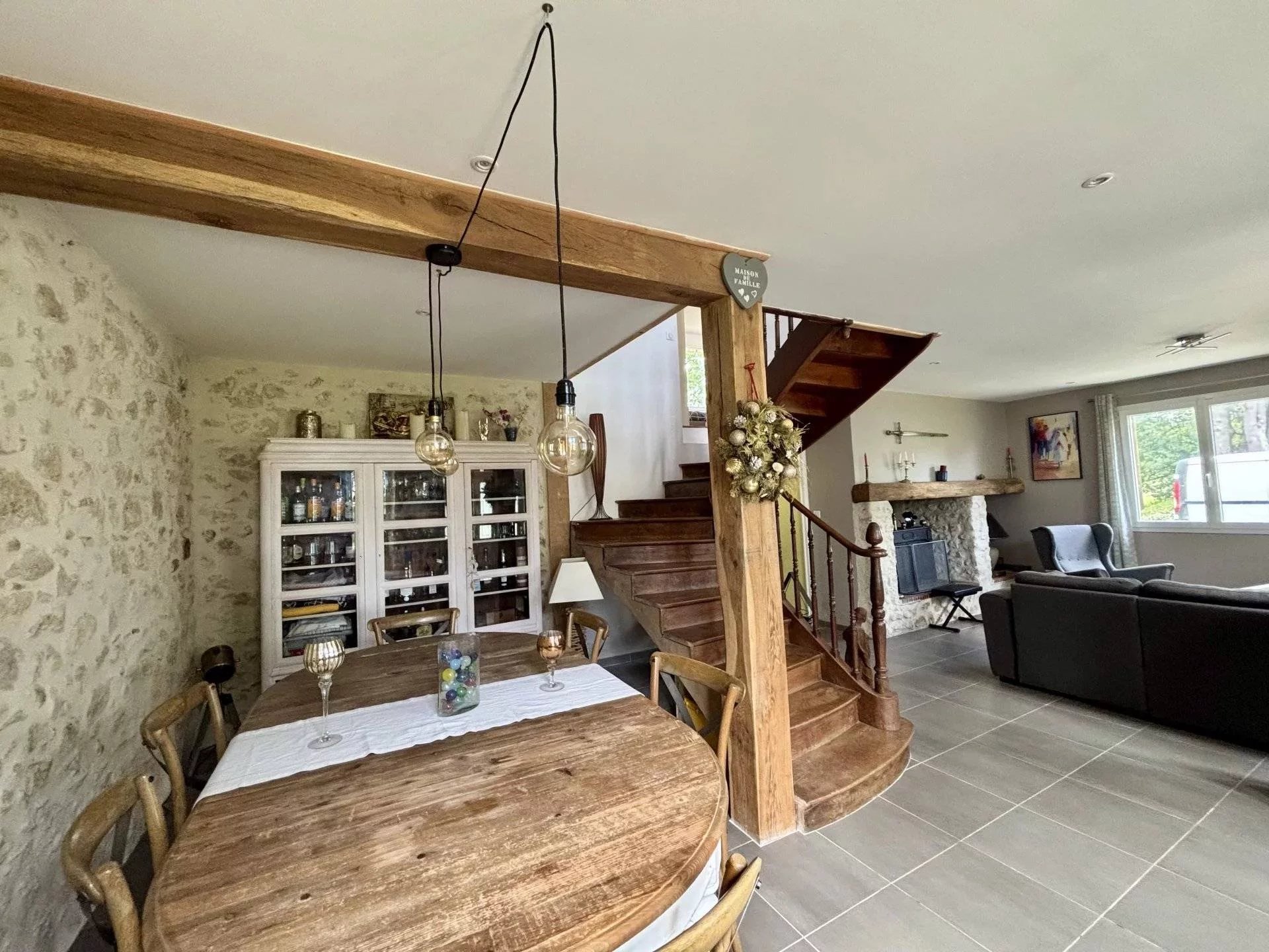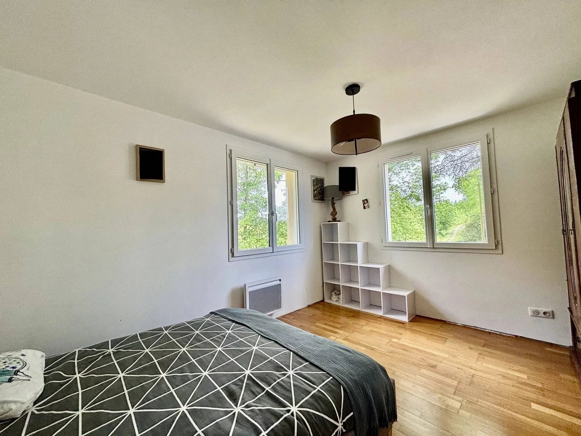La maison est composée au rez-de-chaussée d'une grande pièce de vie avec poêle à pellet et cheminée, une cuisine donnant sur une terrasse, une salle de bain et une buanderie. A l'étage, un demi-niveau dessert deux chambres dont une avec accès à un espace ouvert de 48m2 aménageable. Egalement, le palier principal actuellement utilisé comme bureau dessert une troisième chambre et une salle d'eau avec dressing.