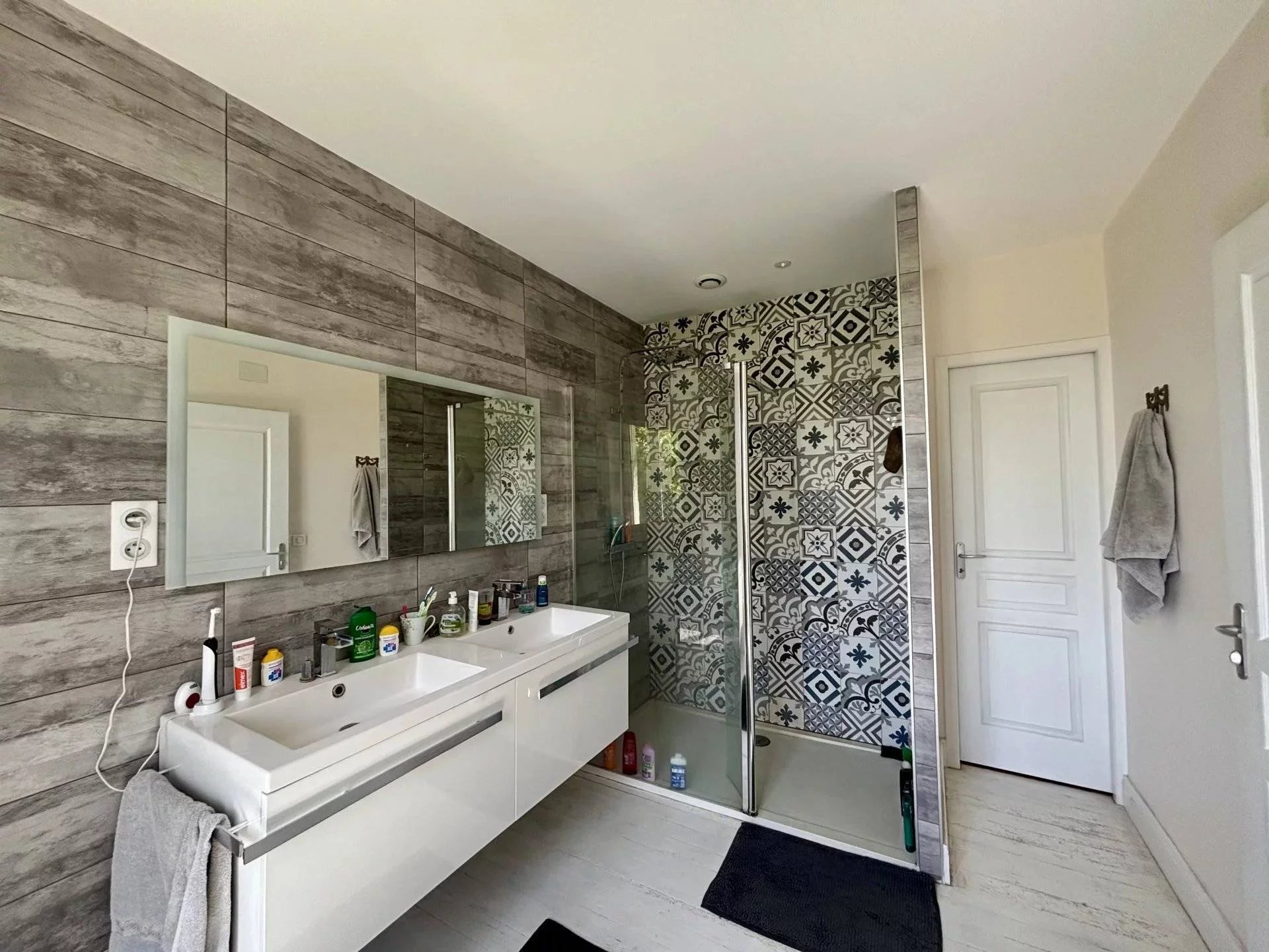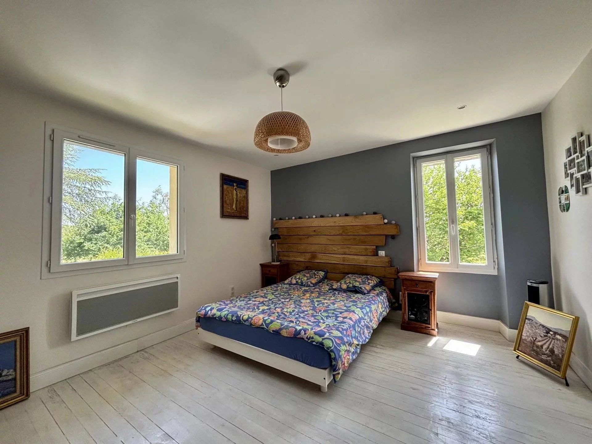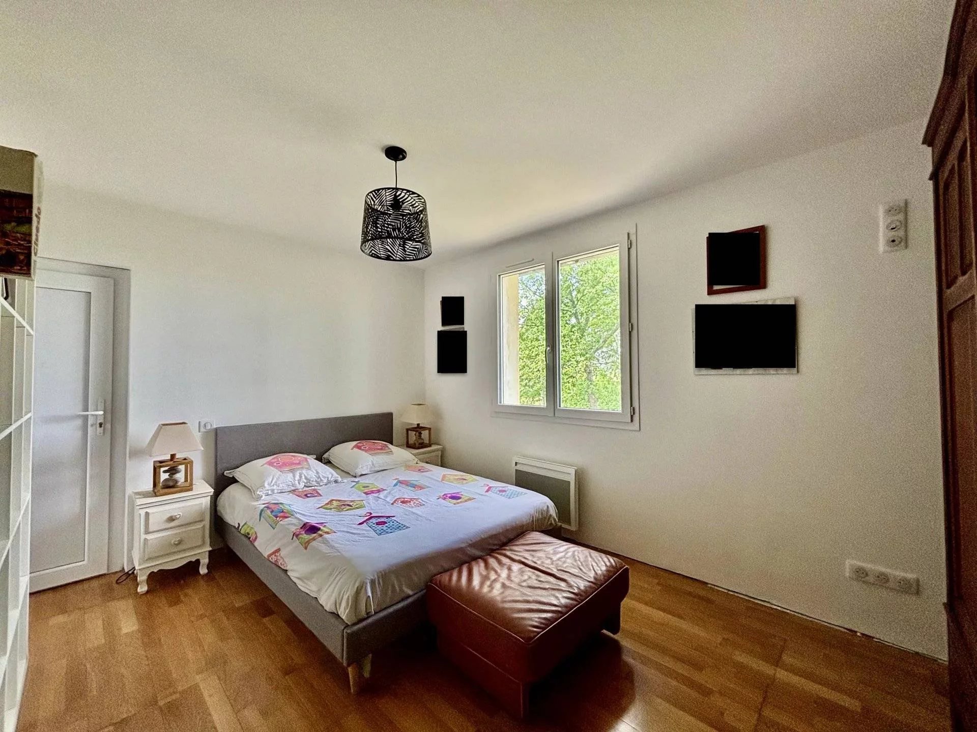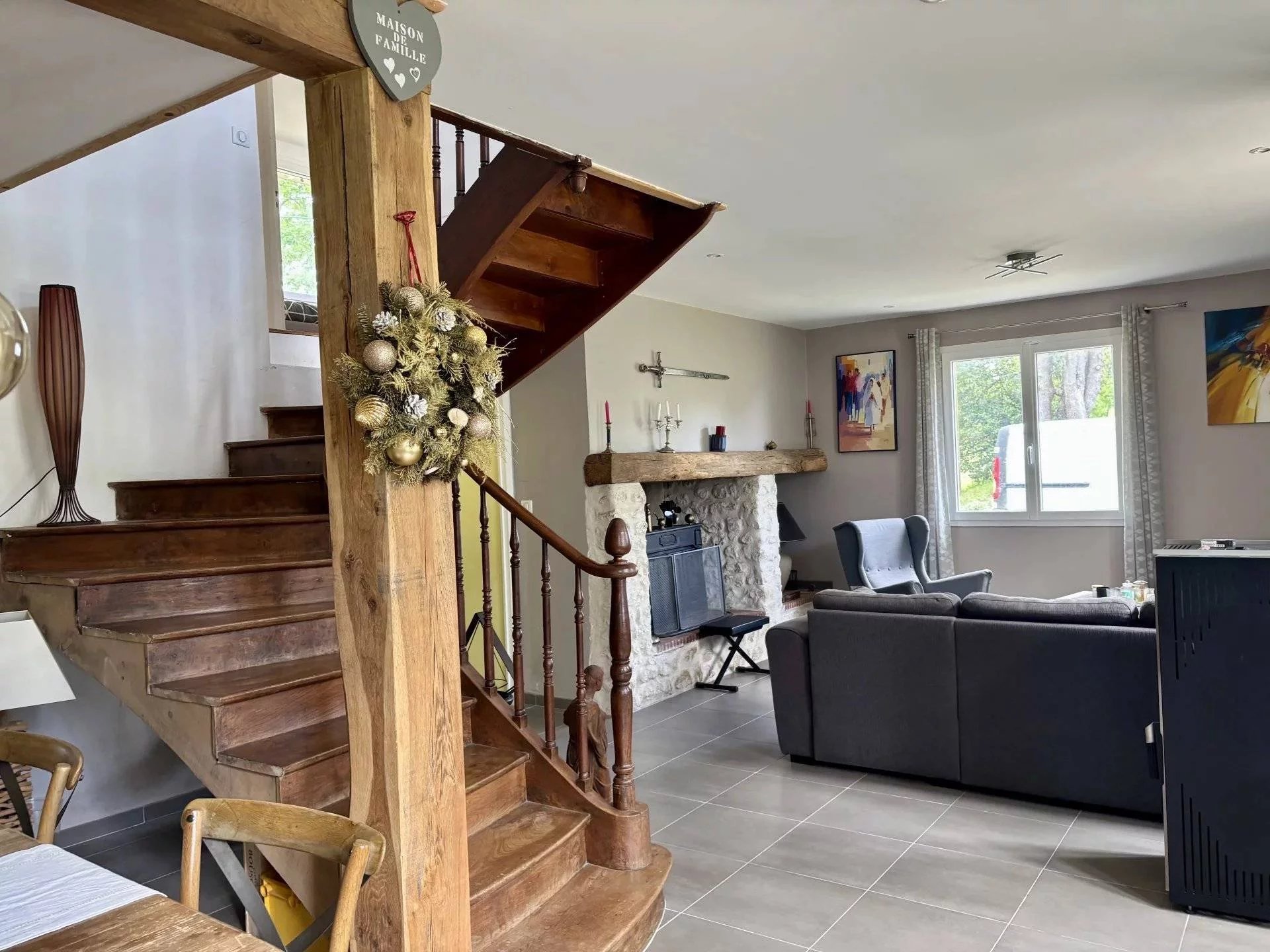 La maison est composée au rez-de-chaussée d'une grande pièce de vie avec poêle à pellet et cheminée, une cuisine donnant sur une terrasse, une salle de bain et une buanderie. A l'étage, un demi-niveau dessert deux chambres dont une avec accès à un espace ouvert de 48m2 aménageable. Egalement, le palier principal actuellement utilisé comme bureau dessert une troisième chambre et une salle d'eau avec dressing.