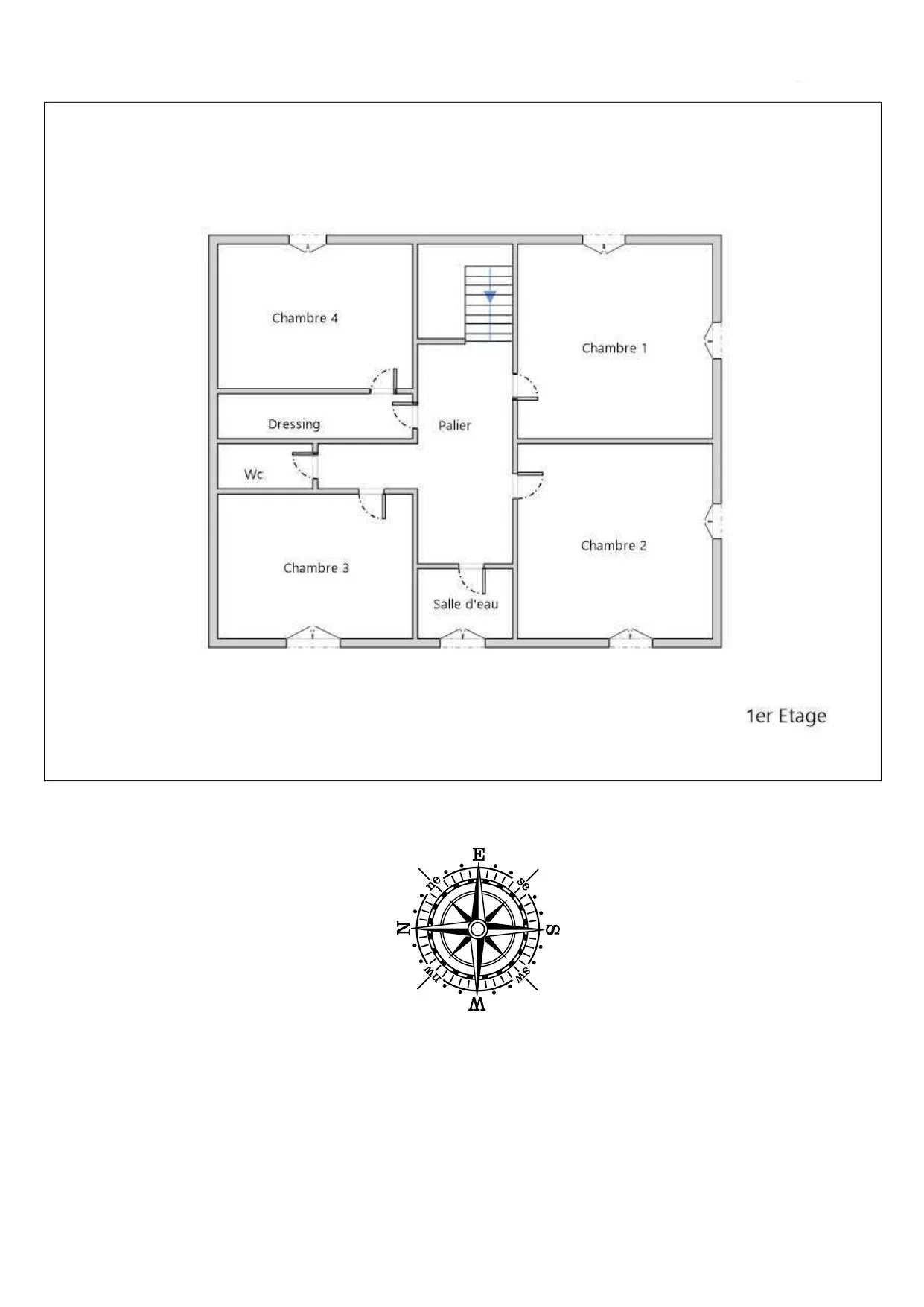 Un bel escalier en bois vous mène à l´étage ou un beau pallier dessert , une chambre (18m²), une chambre (20m²), une chambre (15m²), une salle de bains avec double-vasques et douche (8m²), un wc et une chambre avec alcôve (18m²).