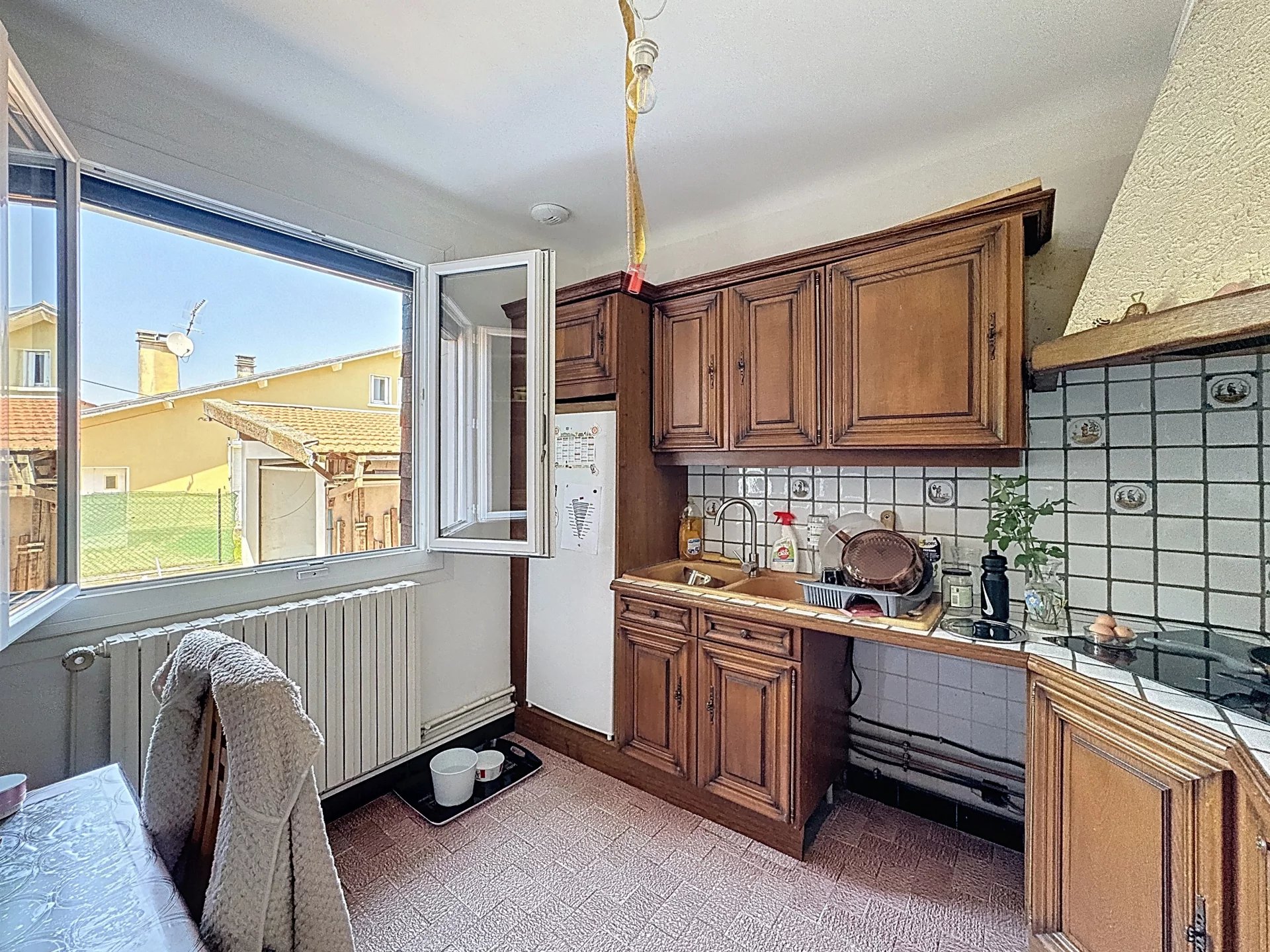 Le séjour donne sur la cuisine (9 m²) semi ouverte.