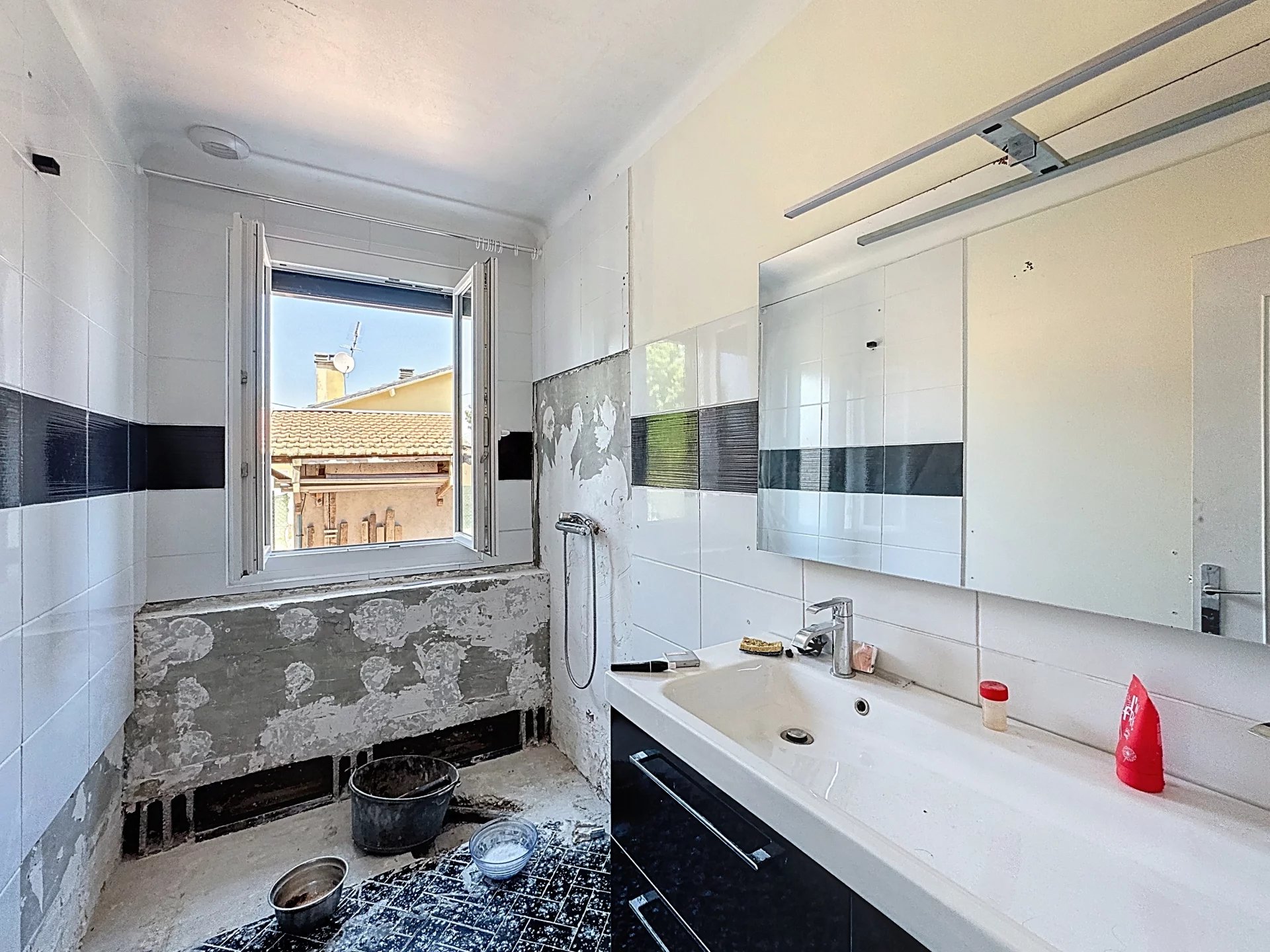 Un dégagement (4,8 m²) mène aux 3 chambres (12, 12, et 9 m²), la salle de bain (4,5 m²) à refaire, et un wc (1,7 m²).