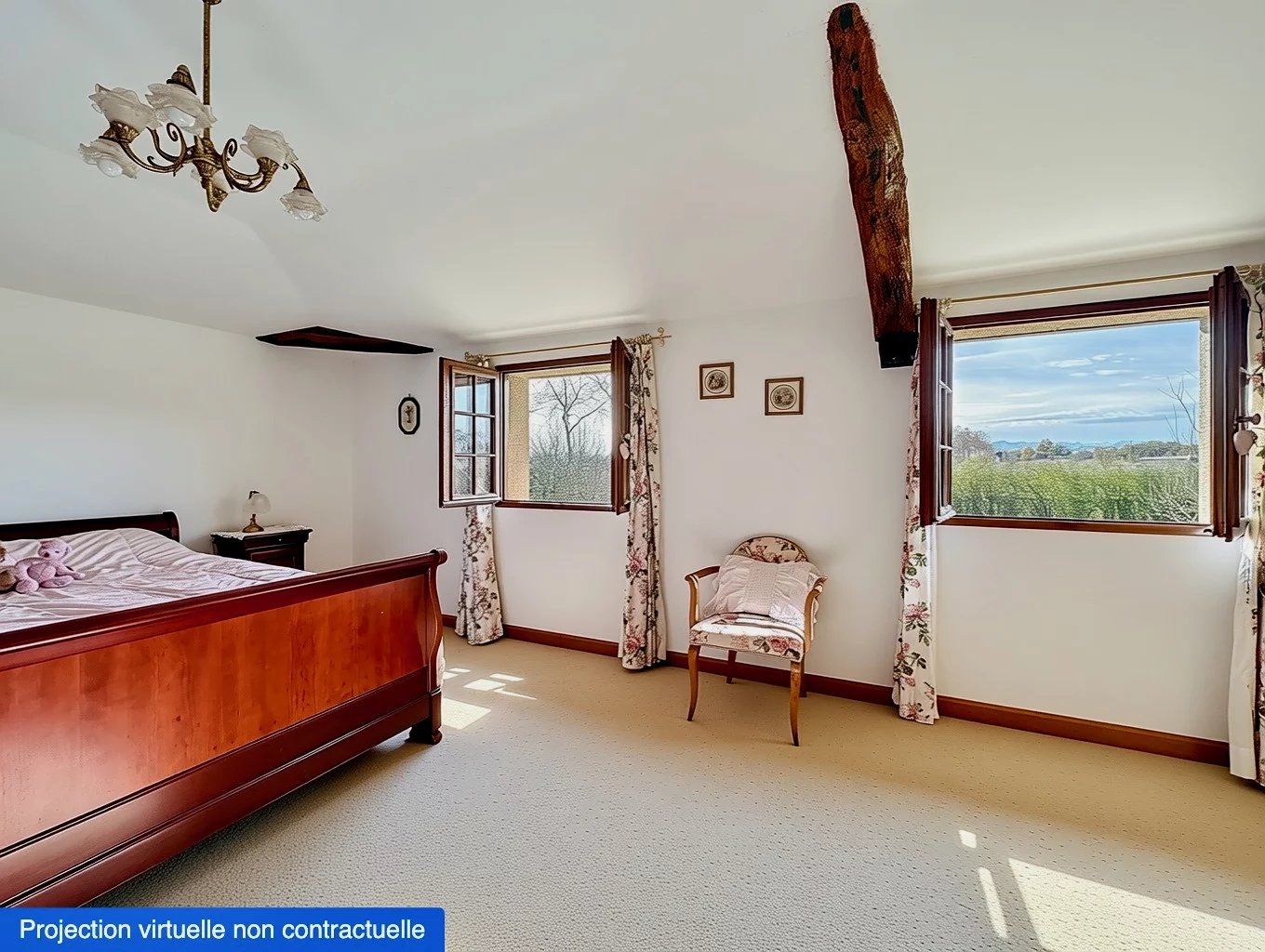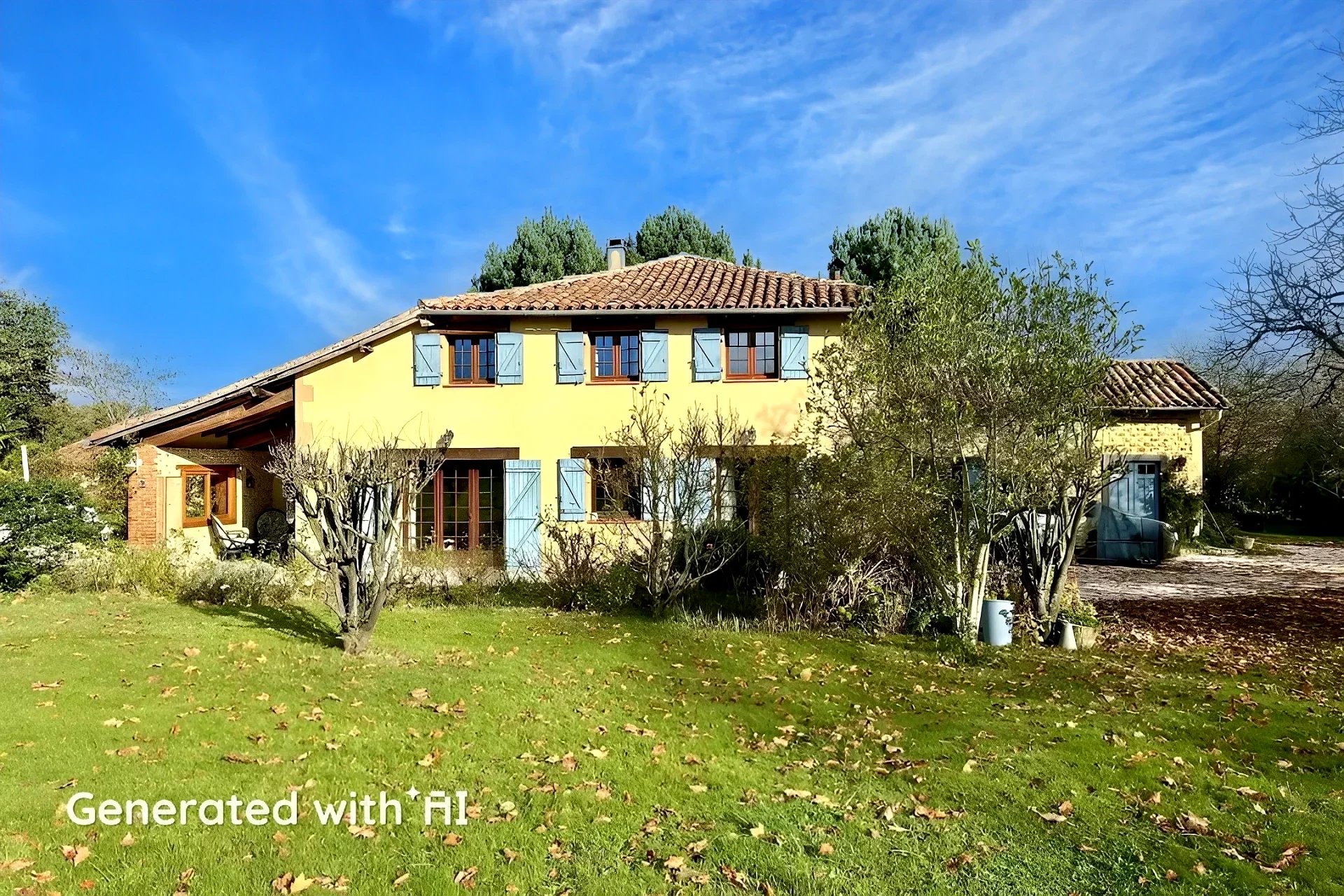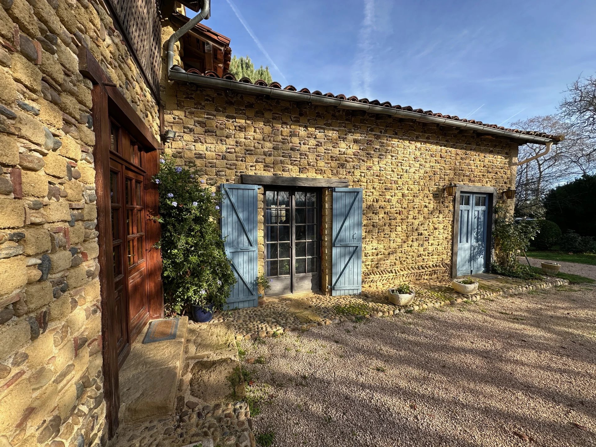 Het terrein van meer dan 7000 m² is beplant met fruitbomen, rozen, hortensia's en bloemen. Er is een zwembad omzoomd door een terras met uitzicht op de Pyreneeën.