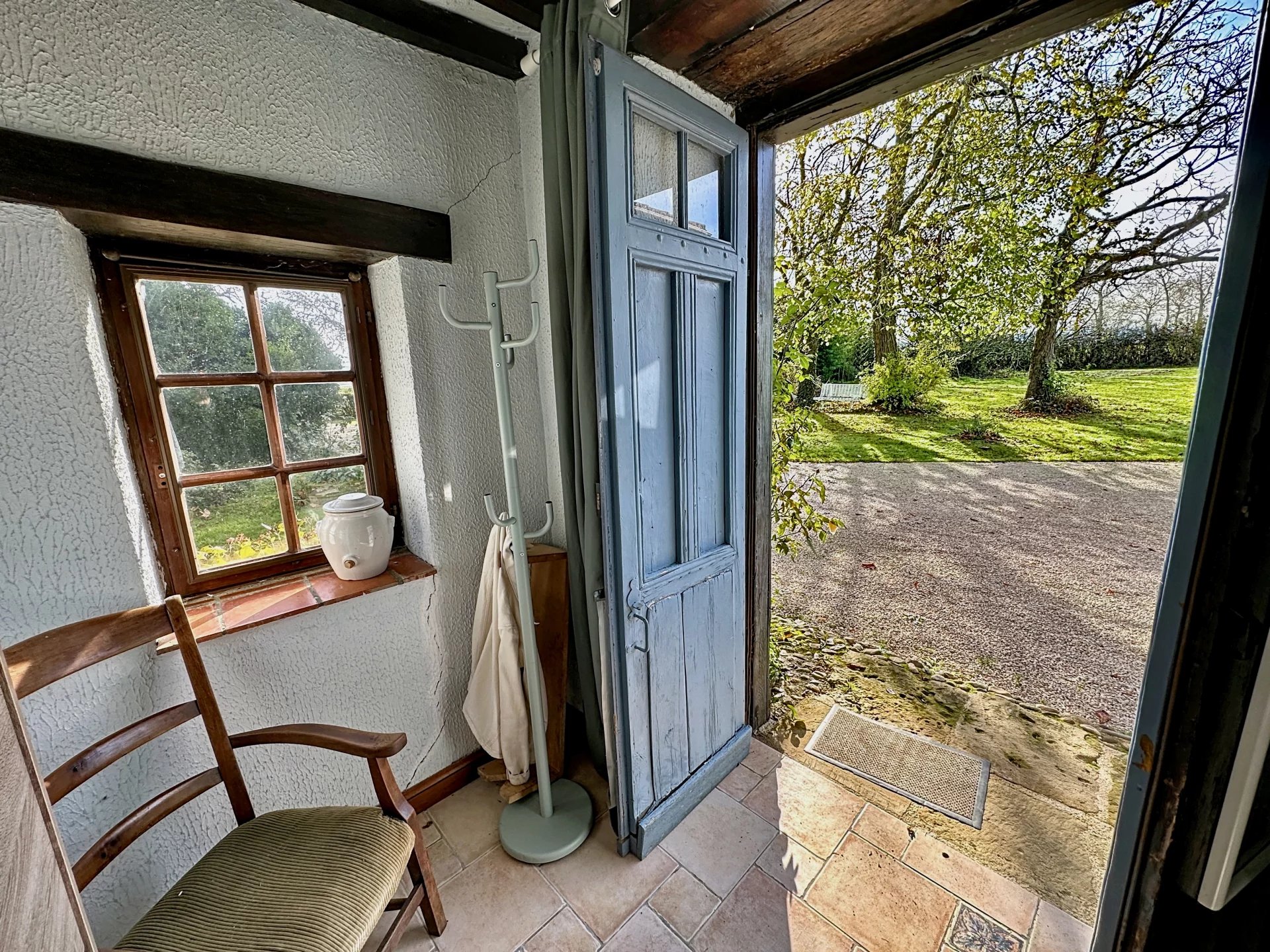 Ramen met enkel glas, centrale verwarming op olie en open haard. Riolering met septic tank. Elektrische poort.