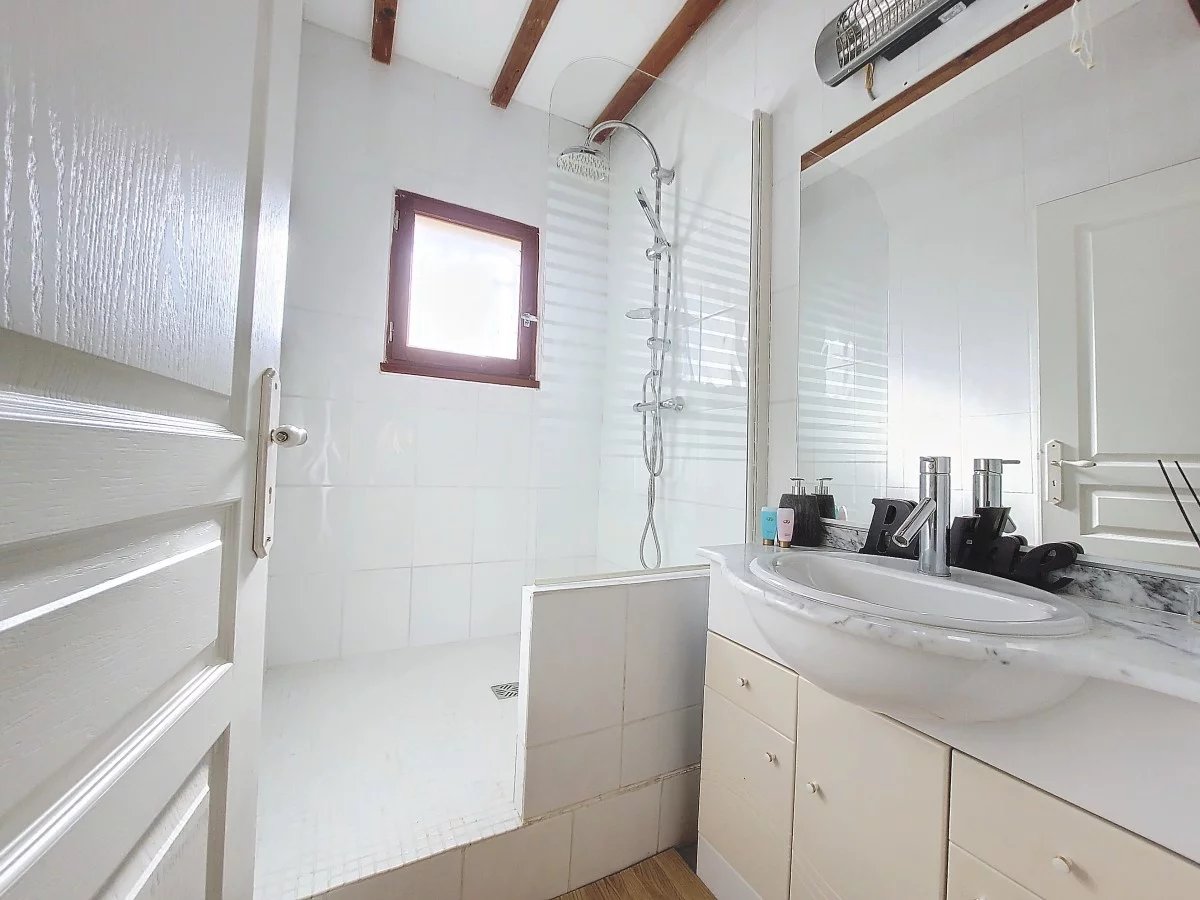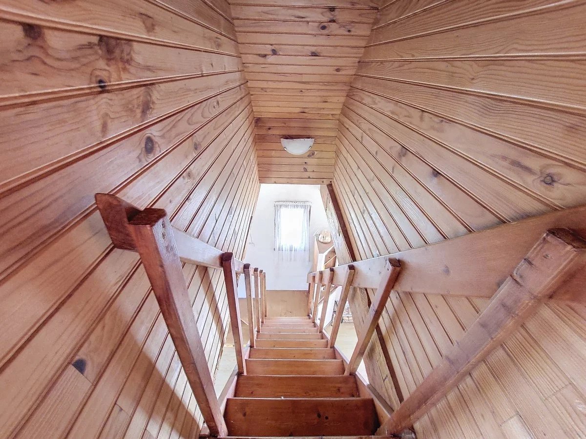 Op de begane grond bestaat de tweede woning uit een grote woonkamer met een lichte, open keuken (36 m²), een doucheruimte en een apart toilet. Een houten trap leidt naar twee zolderslaapkamers.