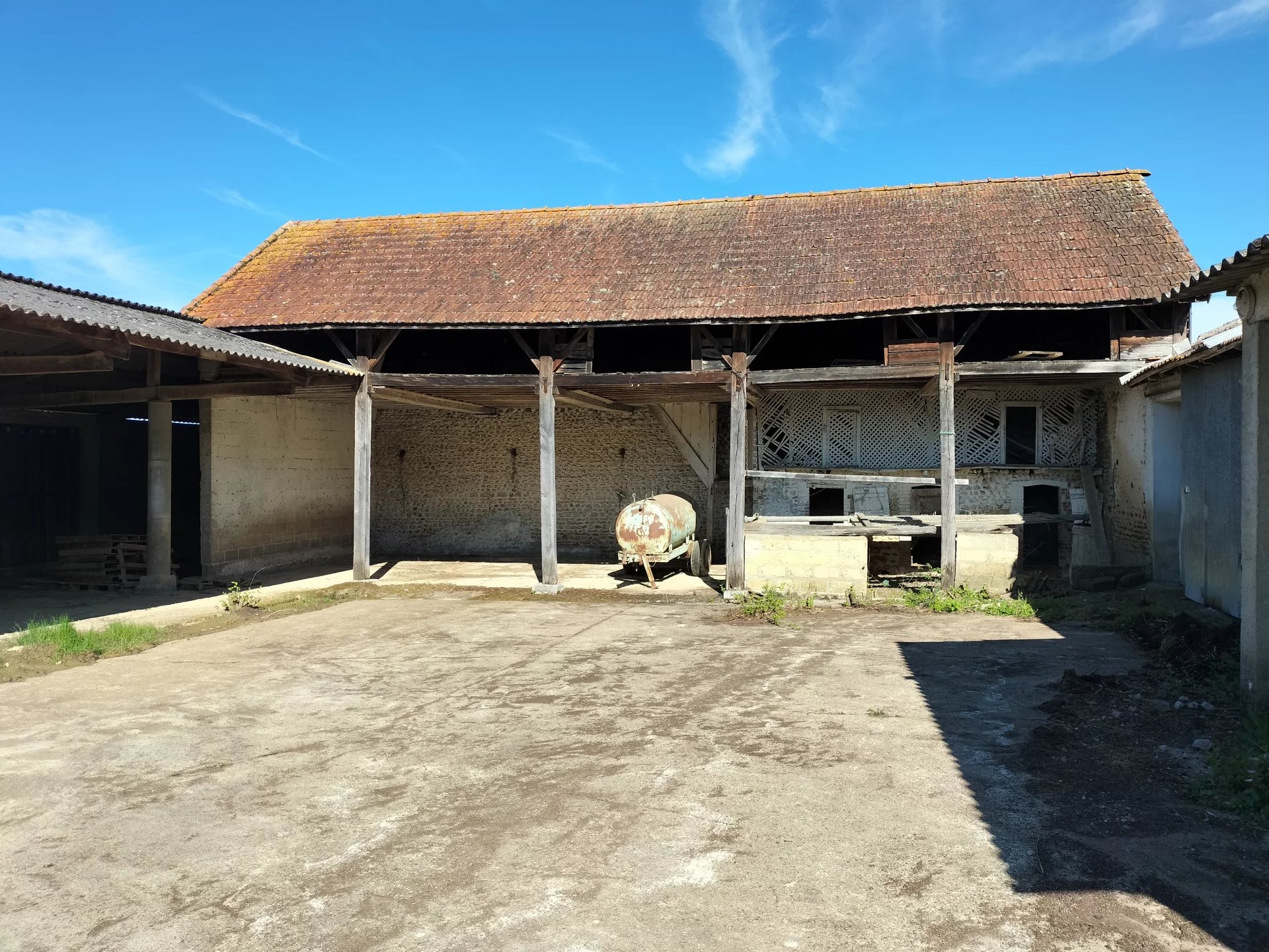 Het bestaat uit een huis met 70 m² woonoppervlak (keuken, 2 slaapkamers, badkamer, toilet) omringd door verschillende bijgebouwen: stallen, kippenhok, schuren en afdakjes.