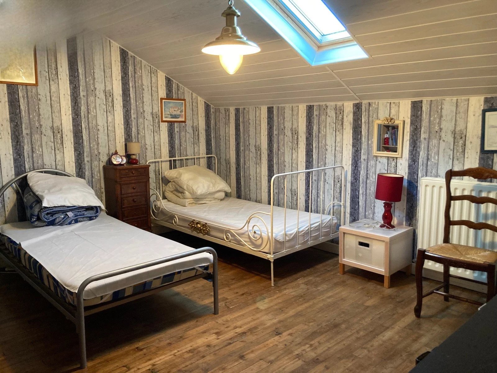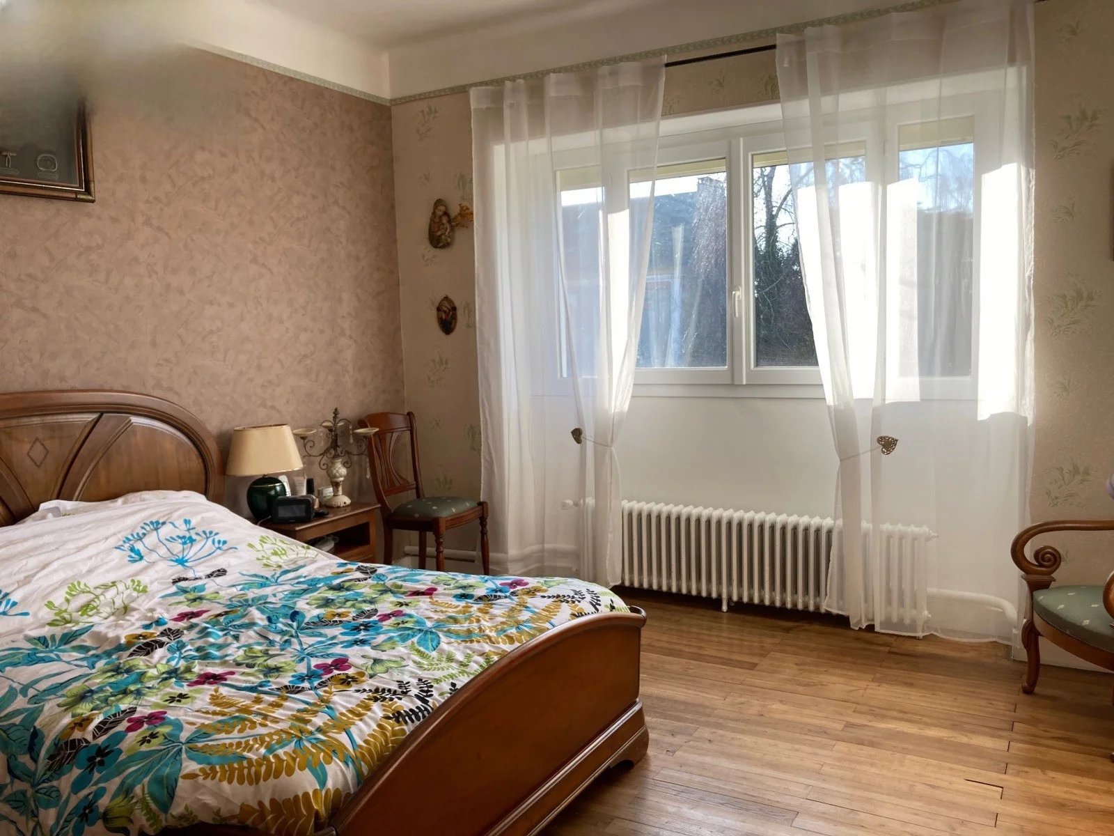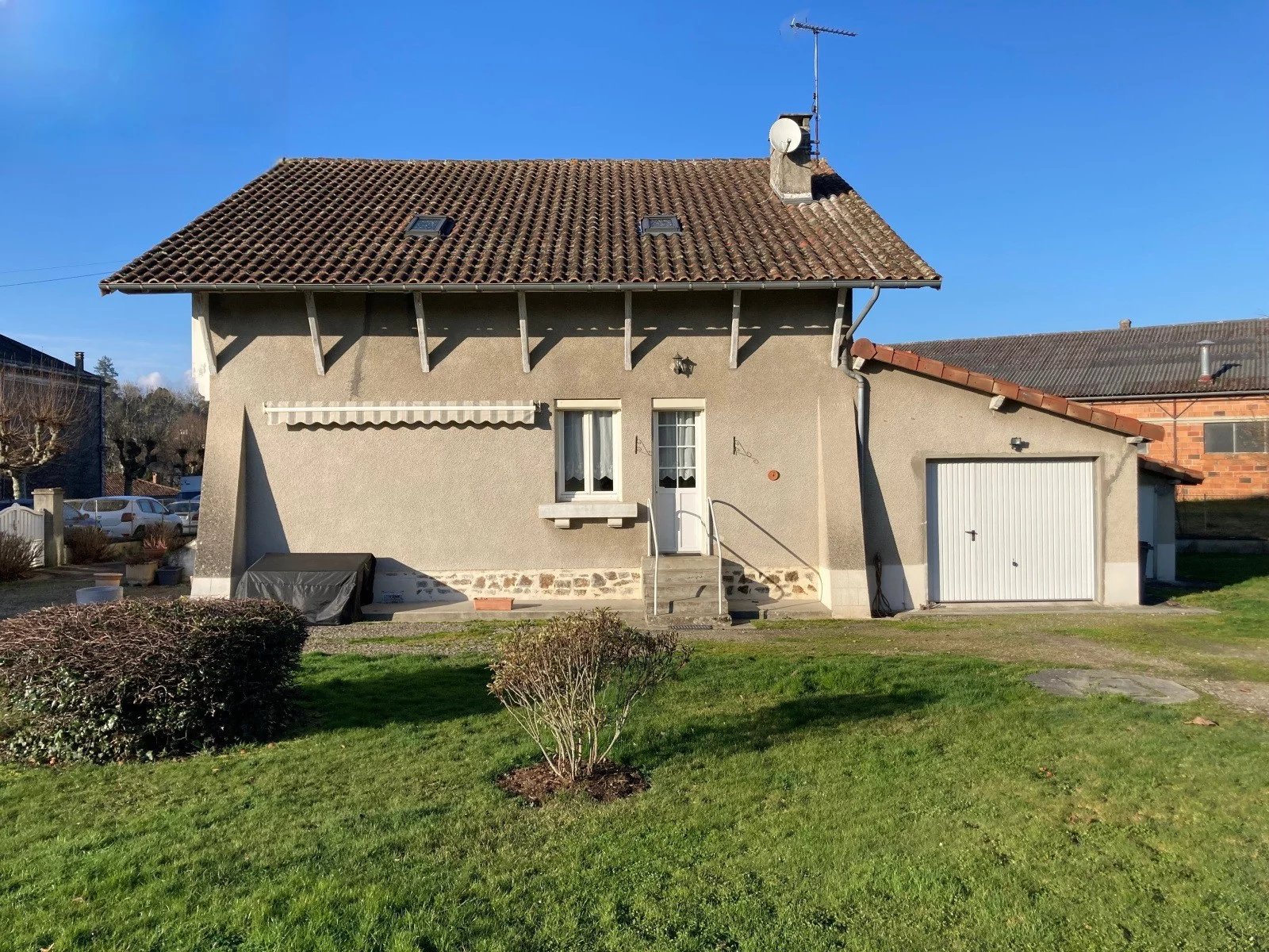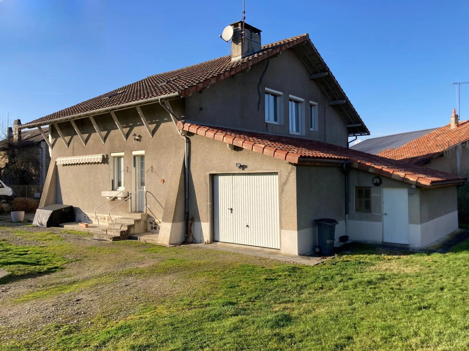 Centrale verwarming op stookolie, riolering, garage van 34 m2, schuur, aangrenzend terrein met waterput, alles op 1176 m2.