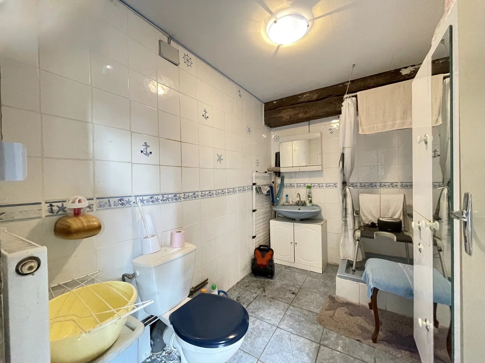 Centrale verwarming op stookolie, riolering. Half overdekt terras + aparte tuin van 210 m2, alles op 470 m2.