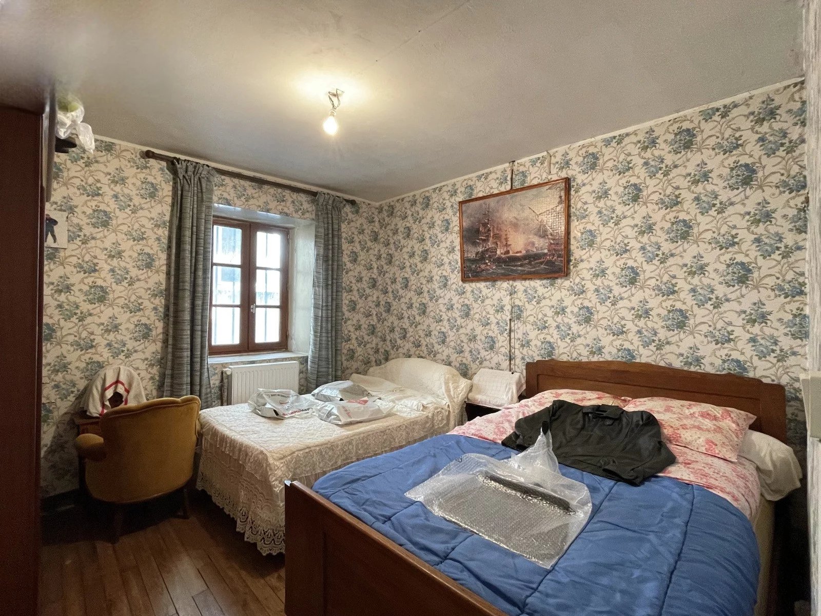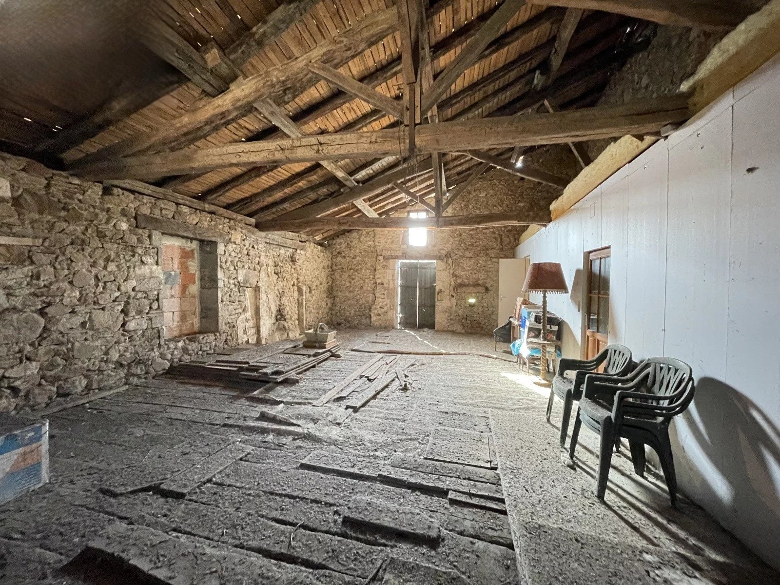 Eerste verdieping: overloop/gang, 3 slaapkamers, oude doucheruimte van 3 m2, 2 zolders erboven, een van 62 m2.