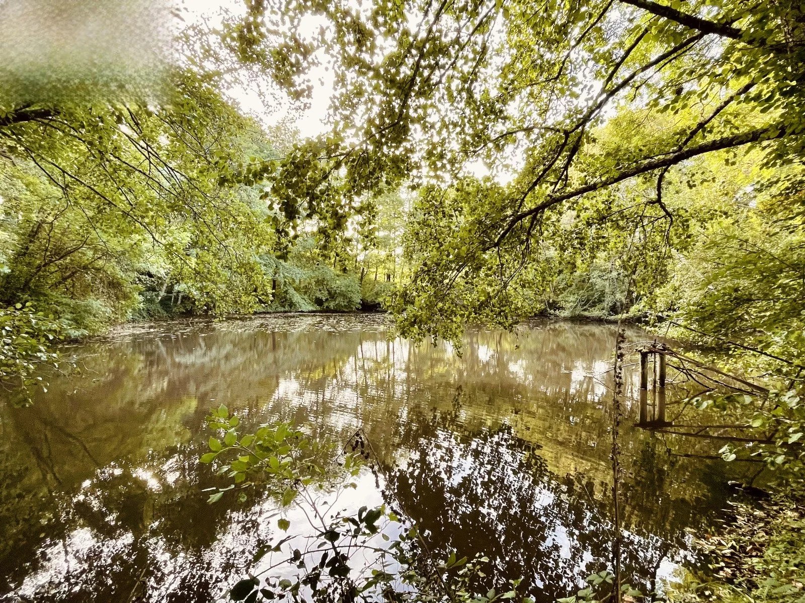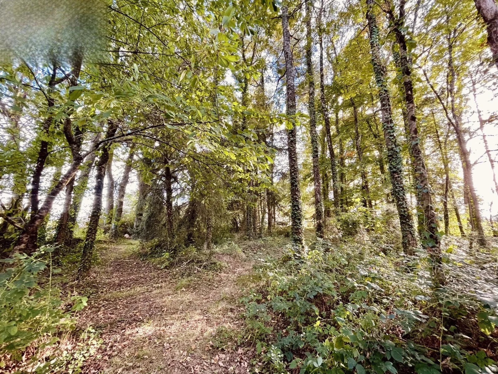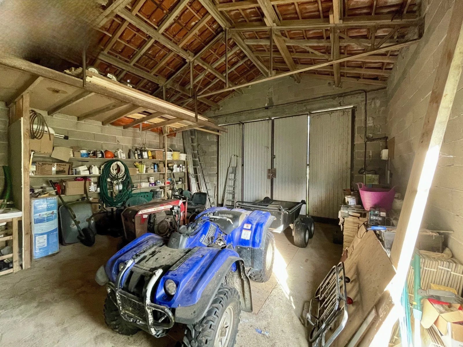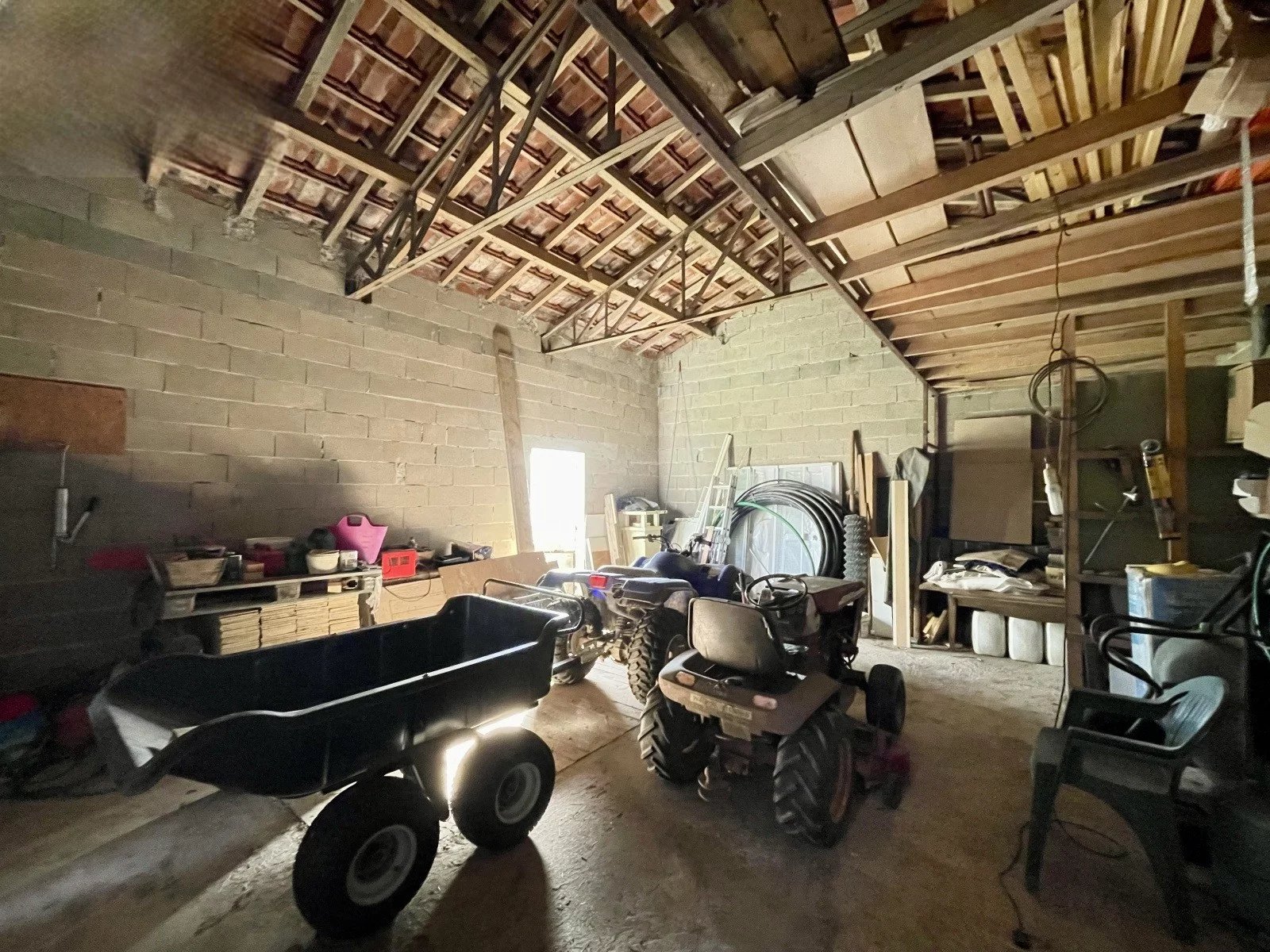 Garage van 41 m2 met wc, aangrenzend niet omheind terrein en bos, kleine vijver van ongeveer 2000 m2, alles gelegen op 12.480 m2 grond.