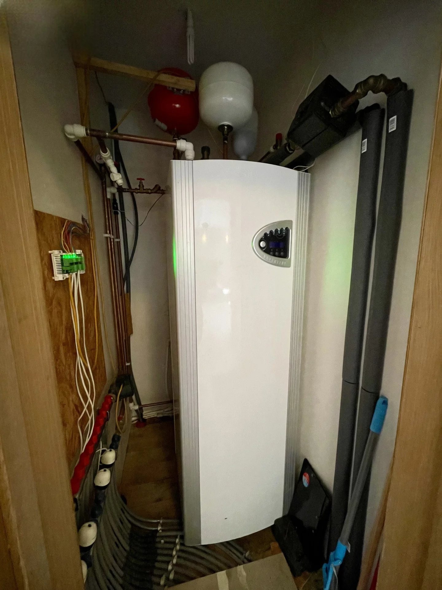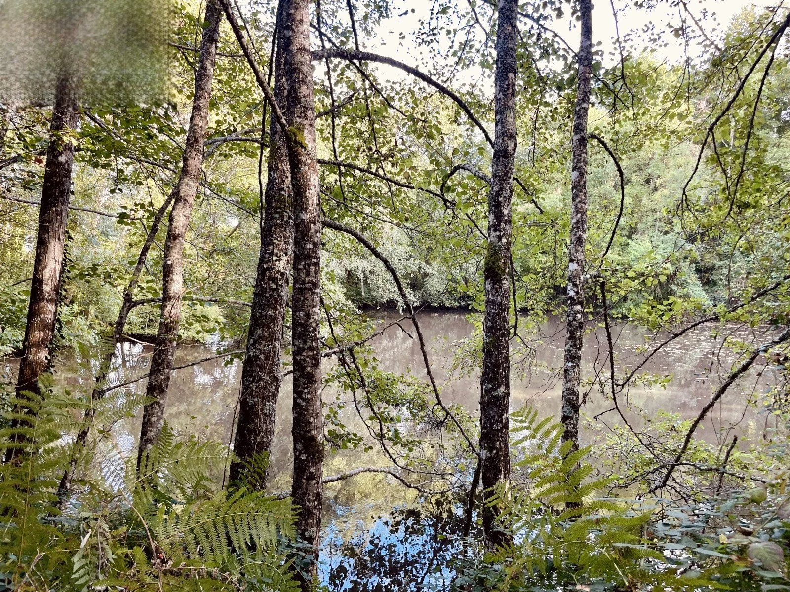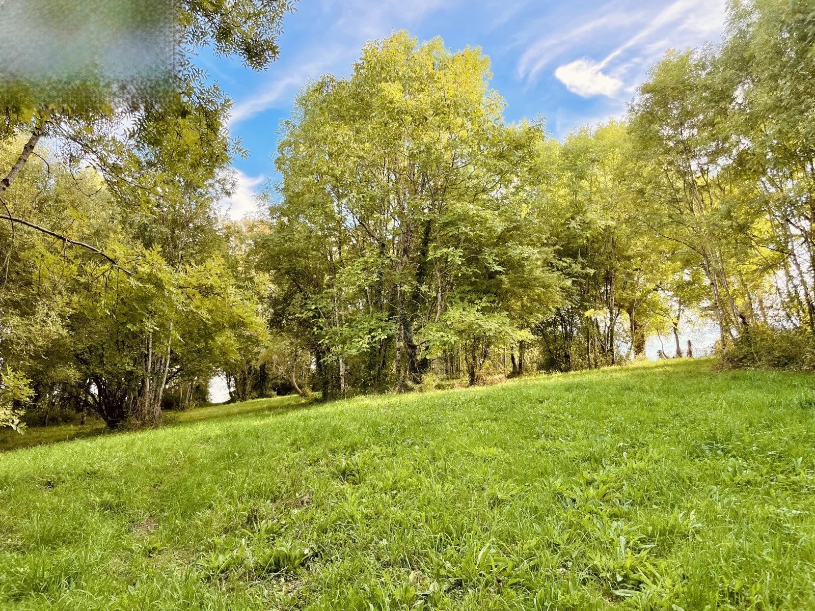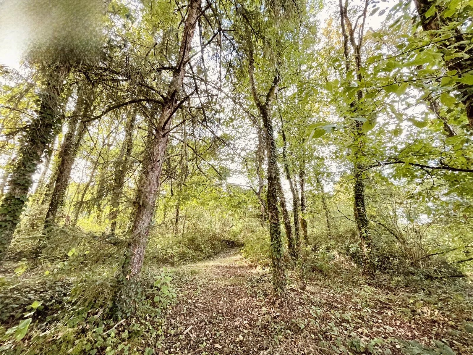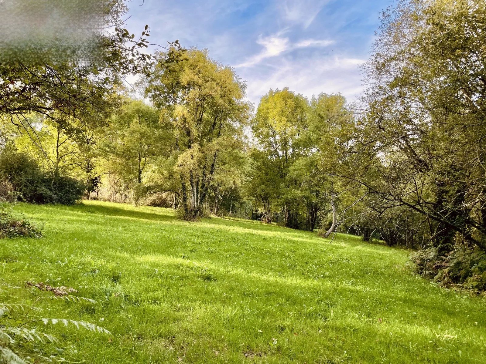 Garage van 41 m2 met wc, aangrenzend niet omheind terrein en bos, kleine vijver van ongeveer 2000 m2, alles gelegen op 12.480 m2 grond.