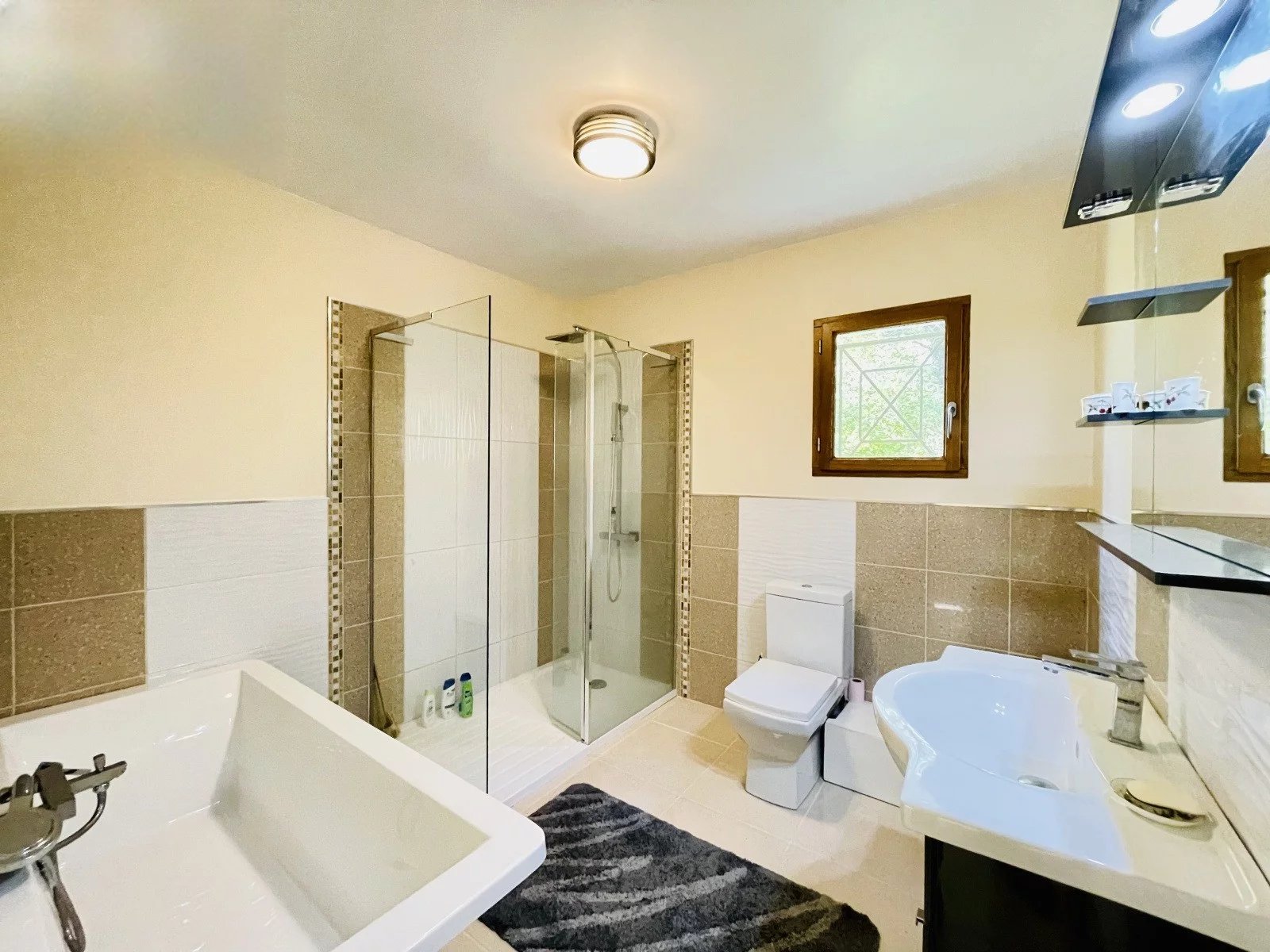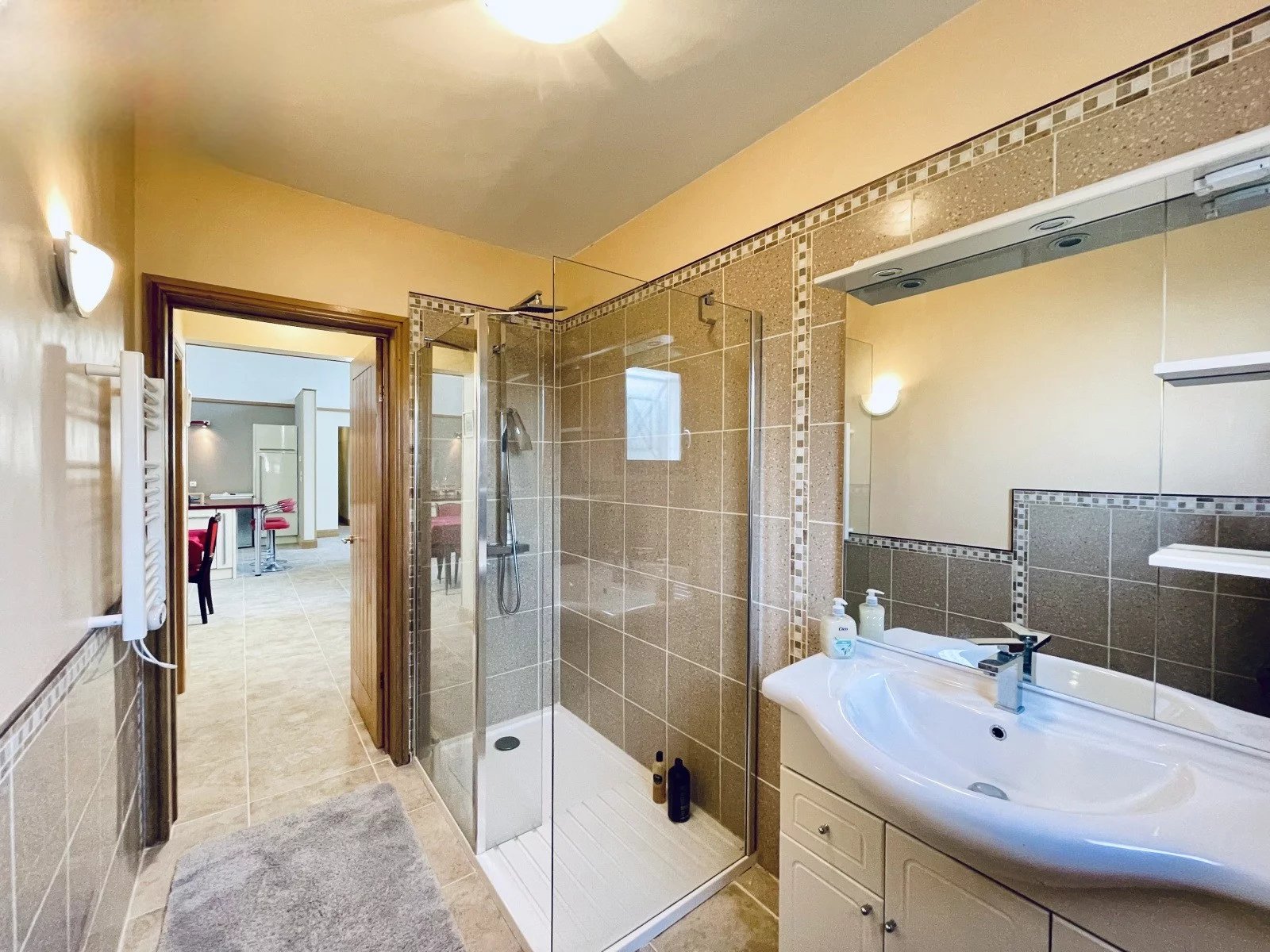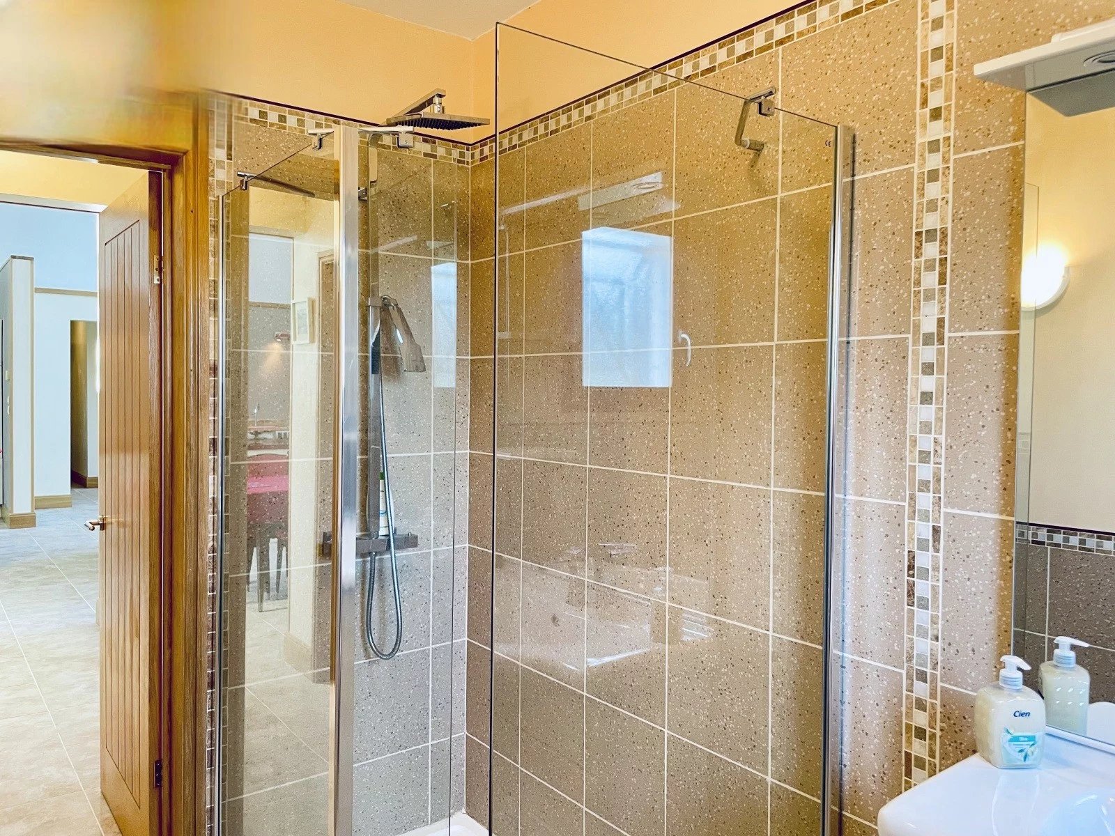 Begane grond: entree, woonkamer: ingerichte keuken/woonkamer, hal met toegang tot zolder, 4 slaapkamers, waarvan één met kleedkamer en doucheruimte/wc met ligbad, toilet, doucheruimte/wc.