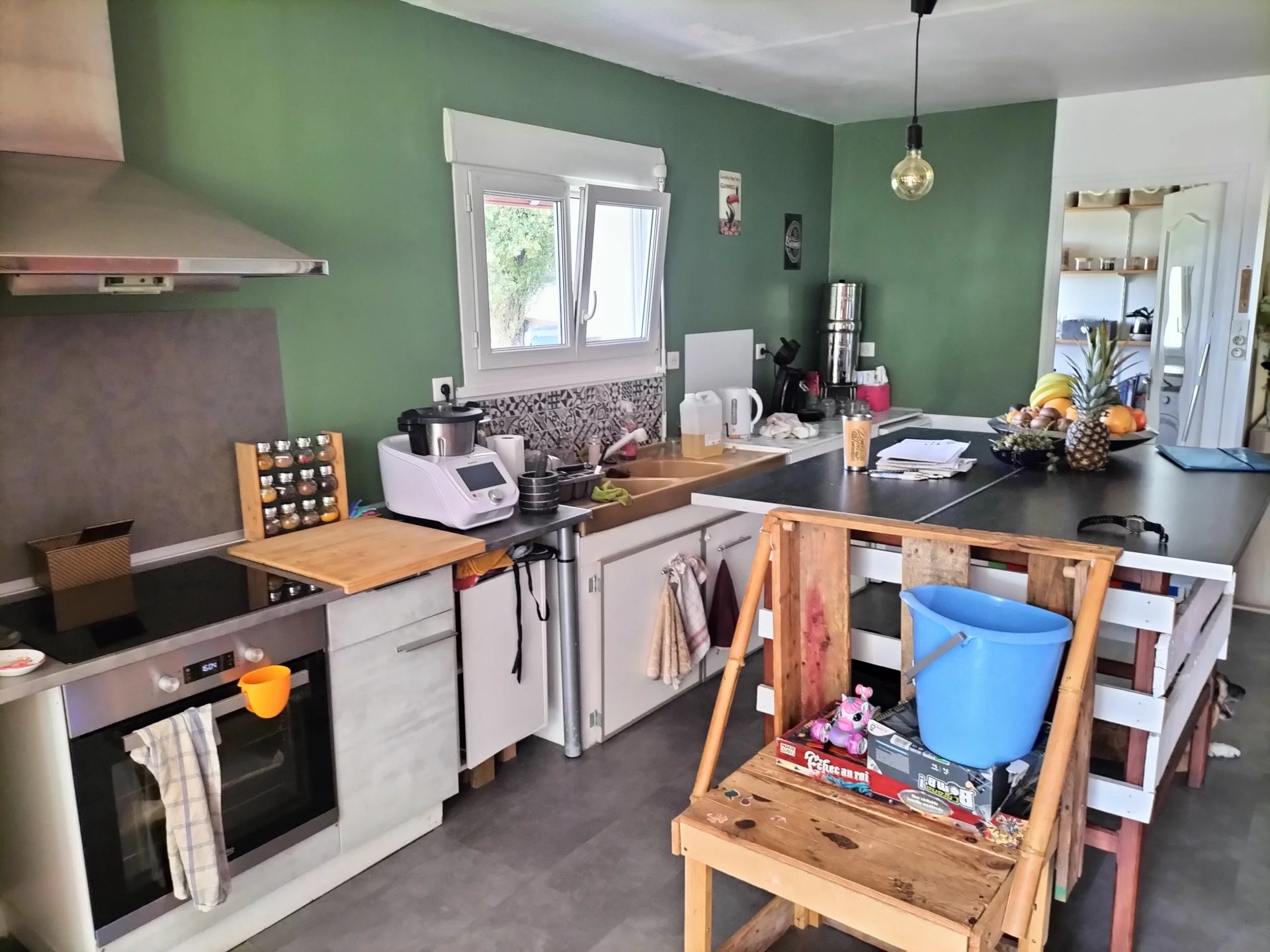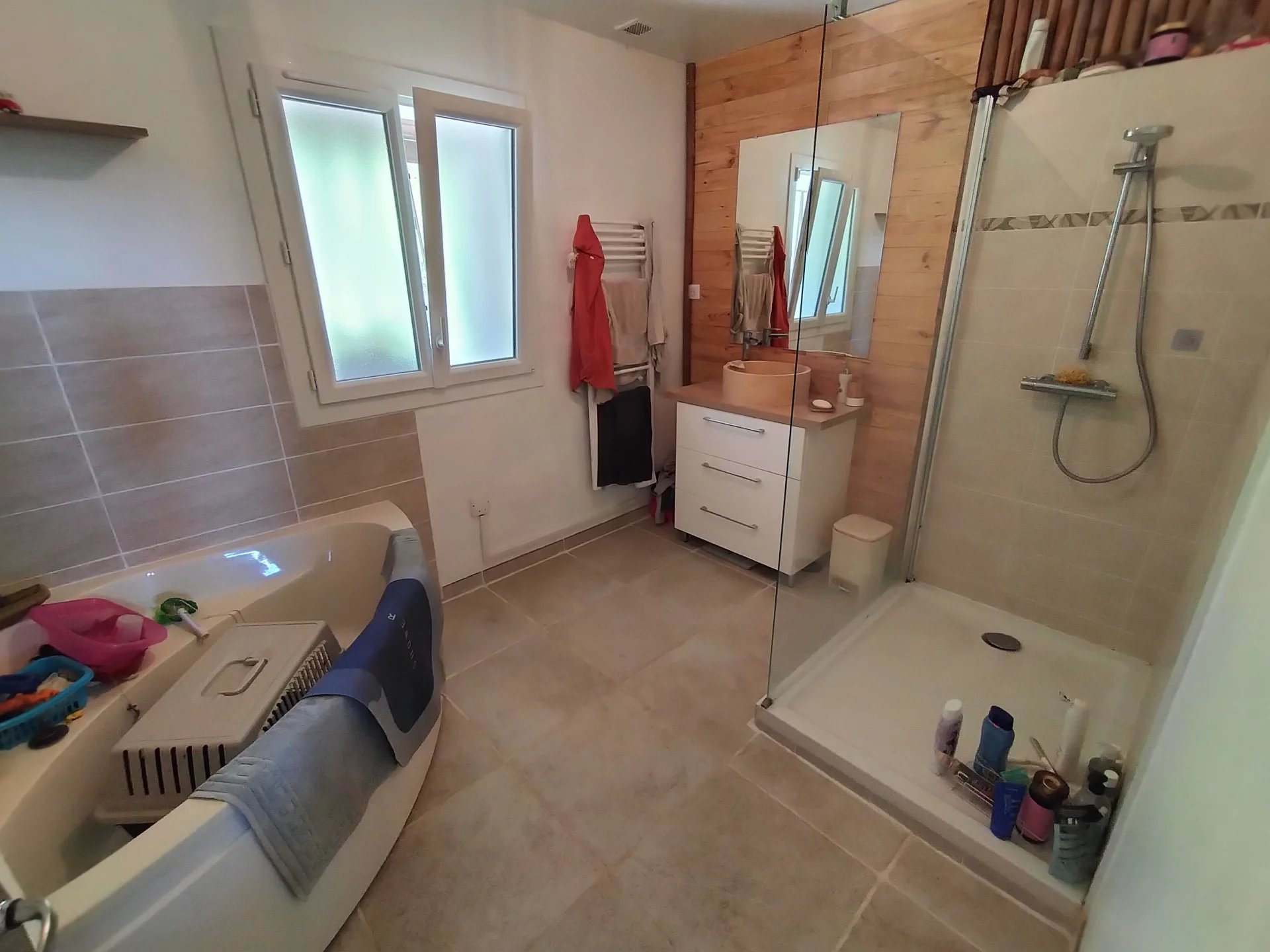 Aan de andere kant, in het verlengde van de keuken, bevinden zich een bijkeuken en vervolgens de ouderslaapkamer (12 m²) met aangrenzende dressing. Een kleine gang scheidt deze van 2 andere slaapkamers (11 en 12 m²).