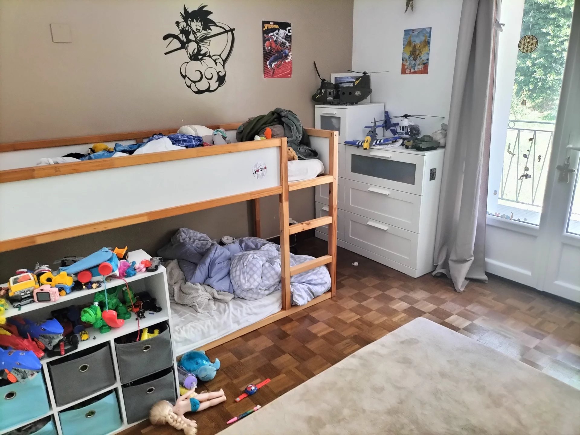Tussen deze twee ruimtes bevindt zich een kamer van 12 m², momenteel een spreekkamer, die ook als slaapkamer kan worden gebruikt. Deze kamer grenst aan twee andere kleine kamers die als opslagruimte worden gebruikt.